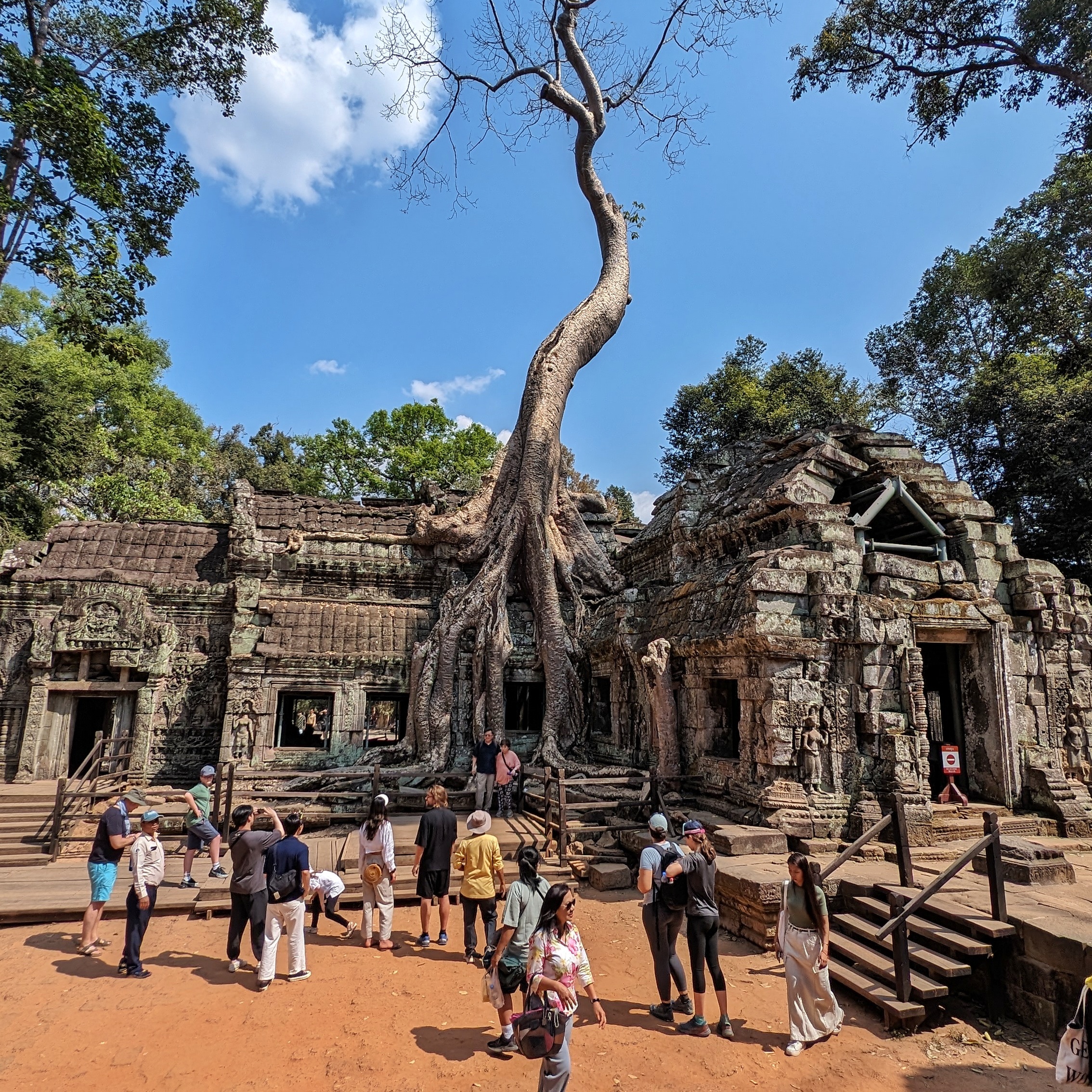 The final stop of the Full-day Angkor Wat Experience was Ta Prohm, which gained international fame after its appearance in the 2001 Angelina Jolie film Lara Croft: Tomb Raider. The ruins are notable for the extent of damage caused by the upward growth of trees, and the sight of the gargantuan roots imposingly coiled around the temple’s surfaces makes you think that you’re at the heart of a portal where spirituality and temple has fused together with Mother Nature.