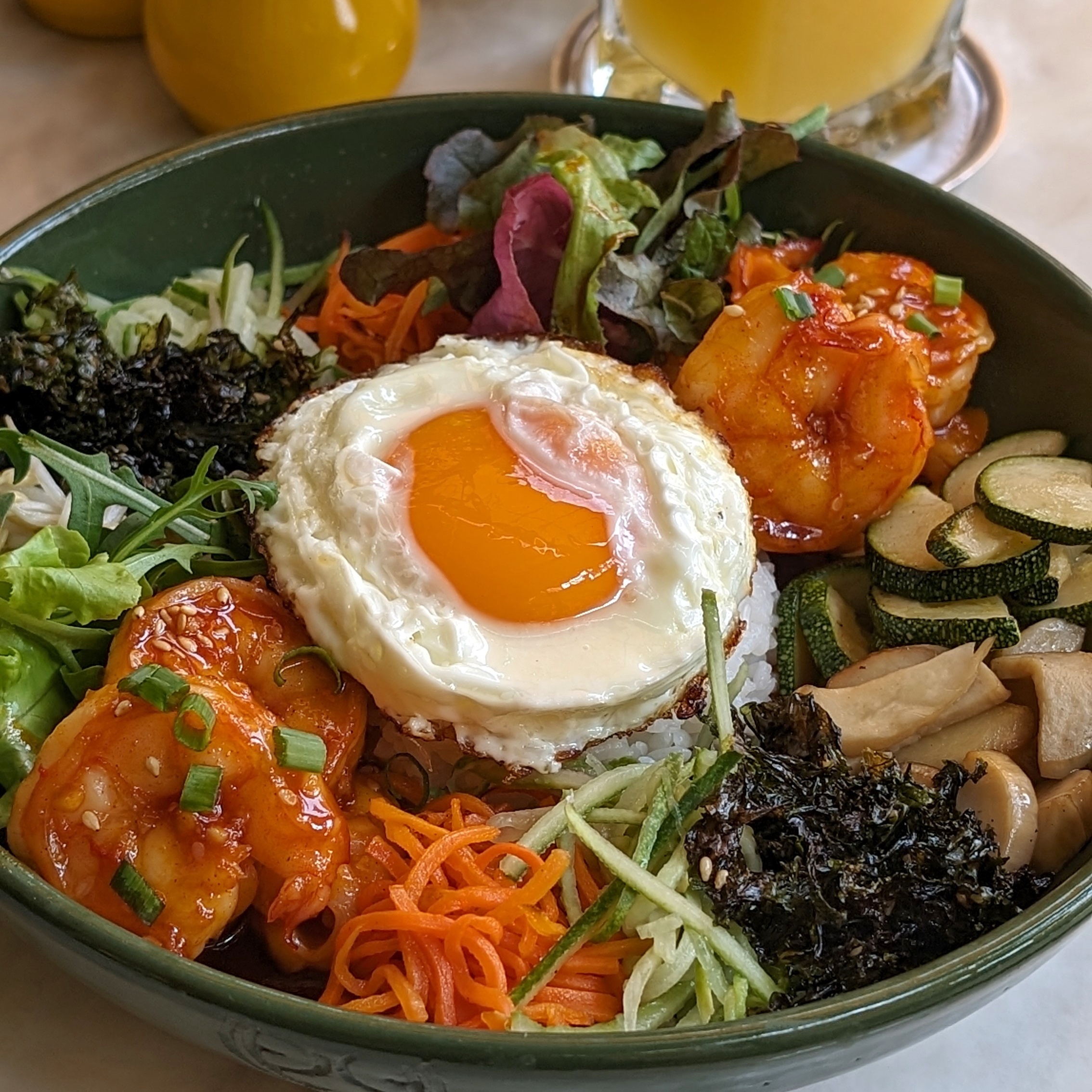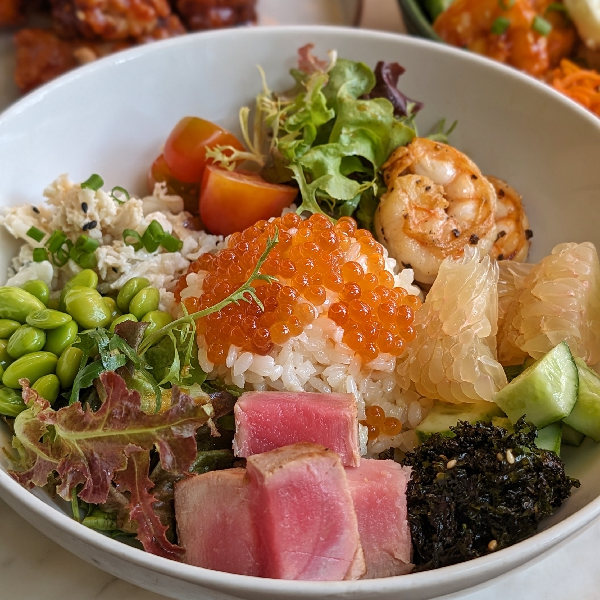 Dressed in cheery shades of yellow and bathed in natural light, the French-inspired The Glasshouse is great for coffee, sweets and casual bites. Chef Mina’s Korean Haemul Bibimbap (sautéed prawn, scallop, calamari, cucumber, lettuce, assorted vegetable, fried egg, crispy Korean seaweed, soy bibim sauce, steamed rice) and the Seafood Poke Bowl (seared tuna, shrimp, salmon roe, local crab meat, avocado, edamame, cucumber, wasabi dressing, steamed rice) were suitably wholesome yet did not compromise on punchy flavour, while the Korean Spicy Fried Chicken (cabbage salad, homemade radish pickle, peanuts, spring onion, steamed rice) may have been tamer than expected but still hit the requisite Korean fried chicken notes. My favourite dish was the Seafood Spaghetti Aglio e Olio (scallop, prawn, broccoli, garlic confit, arugula) which, despite lacking the usual spice I seek from aglio olio, was packed with umami.