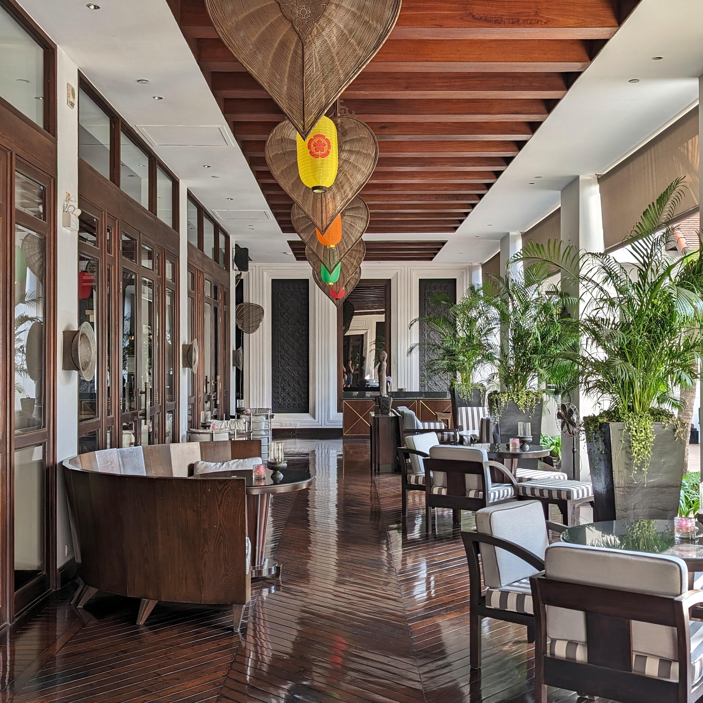 Breakfast is a semi-buffet affair at The Dining Room, which offers both al fresco seats facing the Courtyard as well as indoor seats in a refined setting. Aside from cheeses, cold cuts, pastries, fruits and fresh juices (there is a customisable juice station), guests can enjoy a la minute dishes such as Pancakes (caramelised banana, seasonal fruits, mango compote, maple syrup), Egg Benedict (choice of ham or smoked salmon, hollandaise sauce, english muffin), Bay Moan (grilled marinated chicken, vegetable pickles, chilli dressing, steamed rice), Bor Bor (rice congee, choice of fish or chicken, ginger, spring onion), Num Banhchok (rice noodle with fish curry broth, water lily, green papaya), Kuyteav Teok (flat rice noodle soup, choice of beef or chicken, bean sprouts, saw leaves) and Khor Ko (slow cooked beef shank and tomato, choice of baguette red onion or egg noodle, red onion).