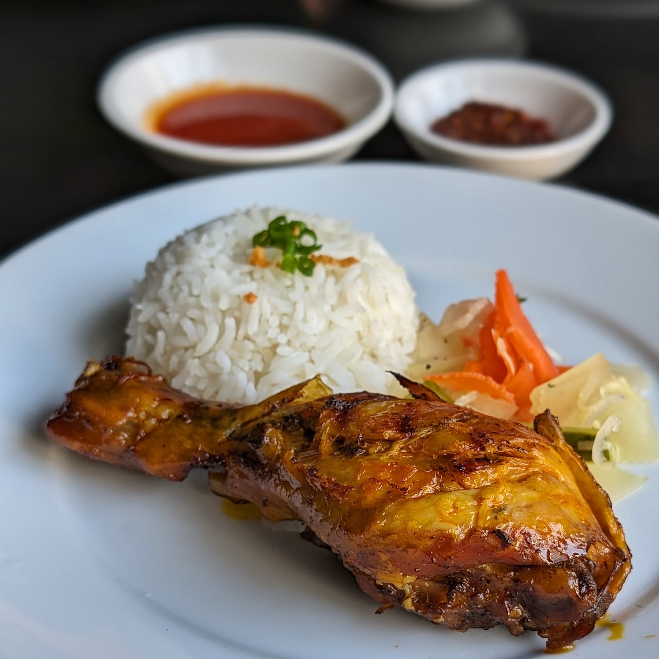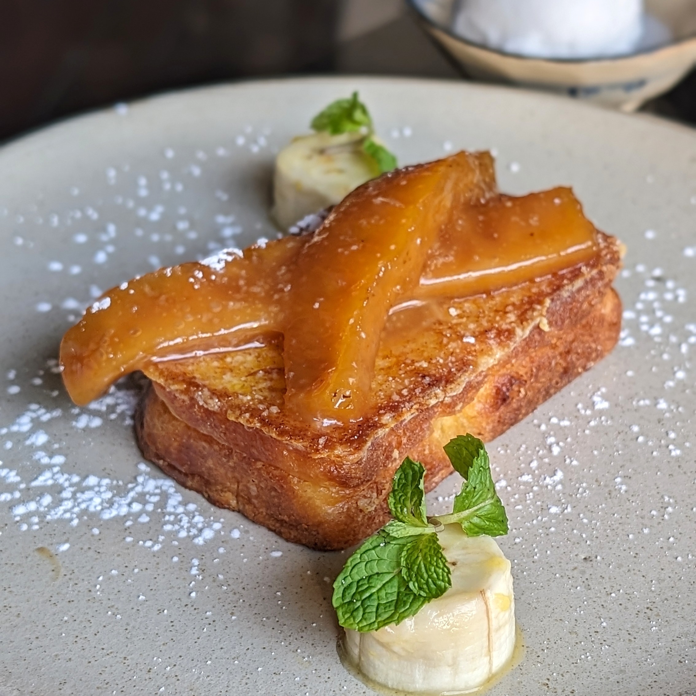My favourites were the well-executed Prawn Omelette (red onion, spring onion, chilli soy sauce, steamed rice) and the smoky Lot Char (wok fried rice noodle with beef, fried egg, bean sprouts, chives), both of which went excellently with the restaurant’s scorchingly spicy but very addictive chilli paste. The French Toast (palm sugar caramelised pineapple, coconut ice cream) also deserves special mention, evoking dreams of pineapple tarts long after Chinese New Year season has passed. I was pleased tha the restaurant offers Khmer coffee, available in a small serving or in a tall glass served with condensed milk (the latter sustained me in the absence of my daily Singapore Kopi C).