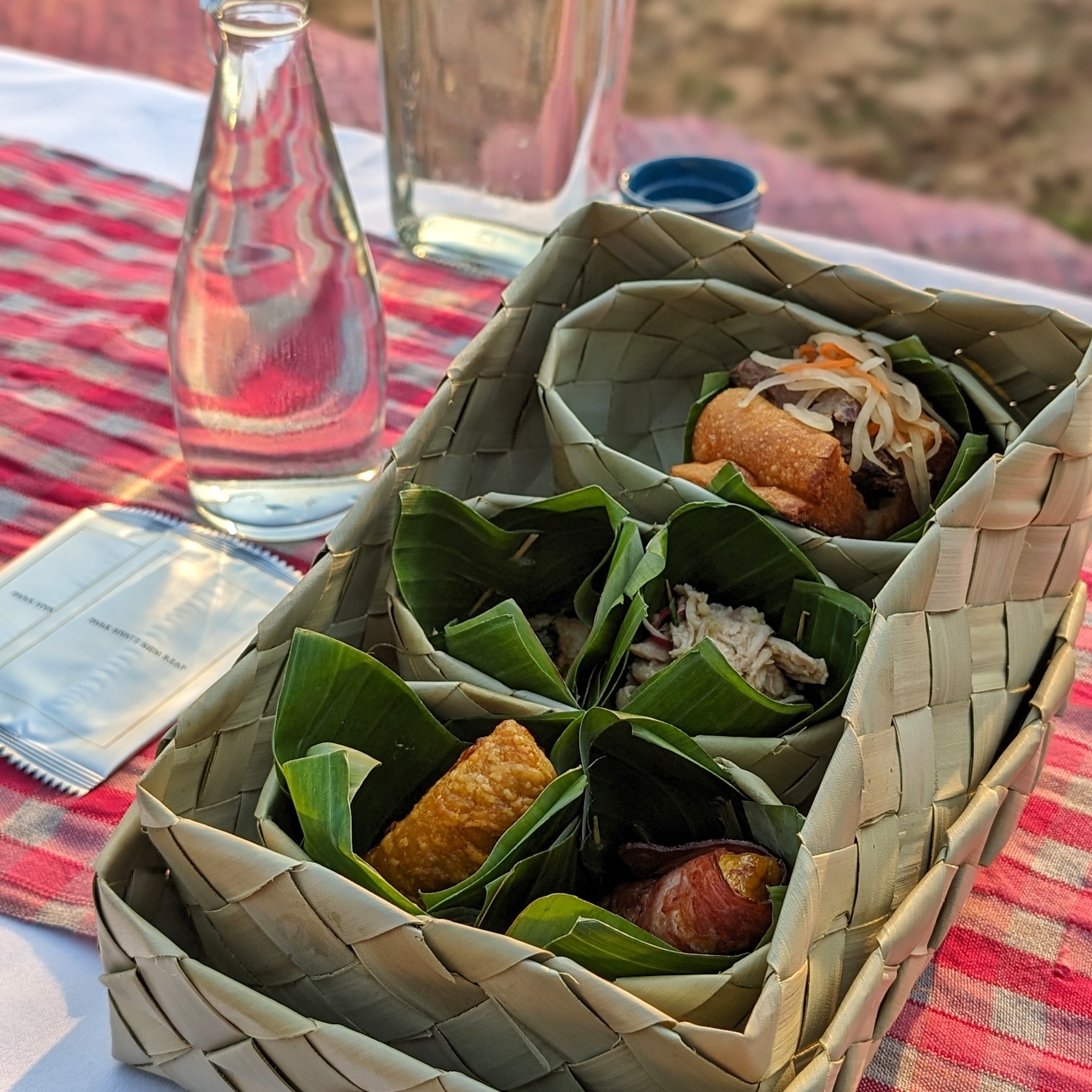 After we purchased some bottles of Sra Sor, we took a short walk to Baray, a nearby enclave comprising ancient rectangular reservoirs. The hotel team had prepared a basket of savoury bites and set up a picnic table. Prior to digging in, the hotel’s head mixologist gave us the opportunity to make our own cocktails using Sra Sor as the main ingredient, and we sipped our own concoctions and noshed on snacks while admiring the calming and beautiful sunset. It was surreal, private, and so magical.