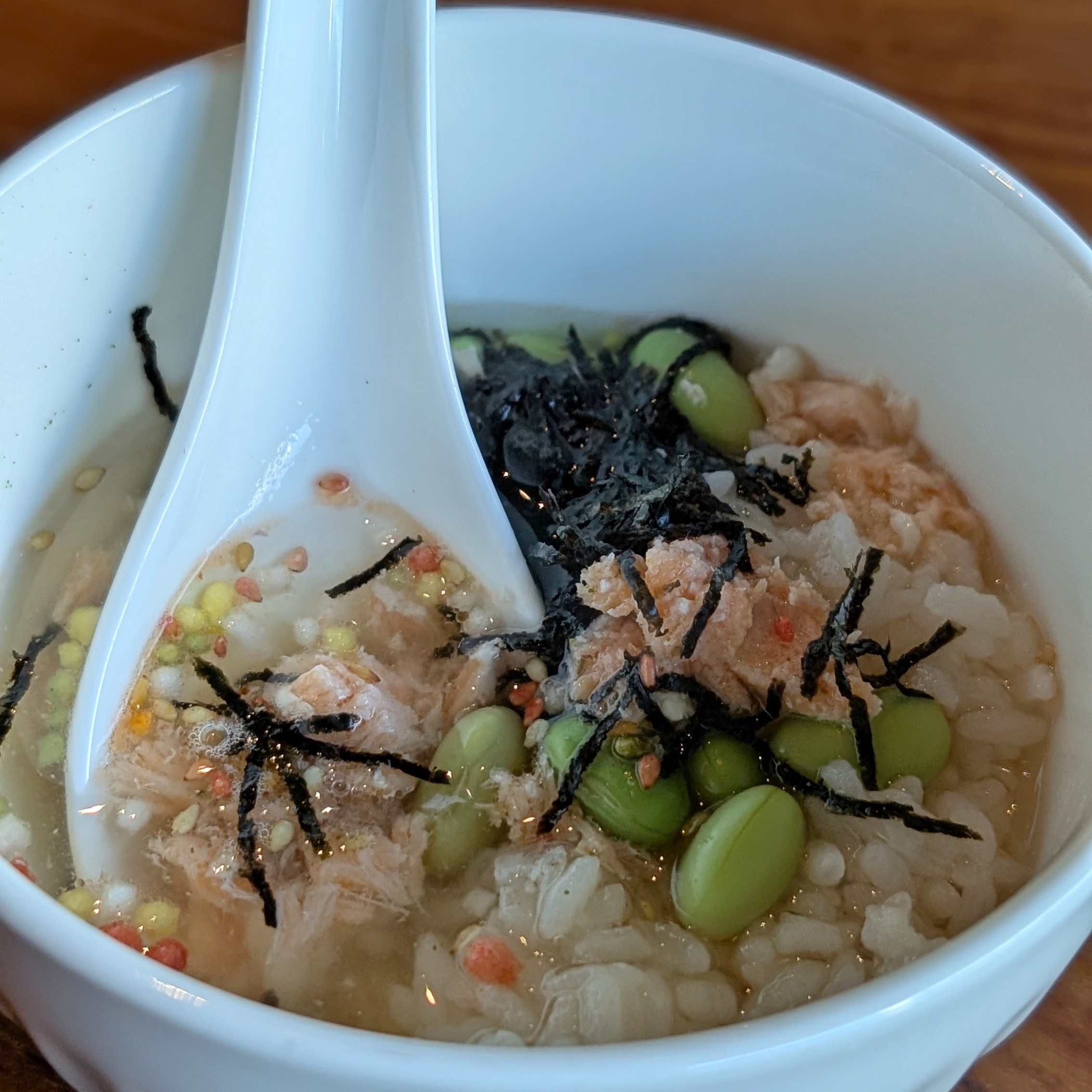 The Udon Laksa (Japanese rice noodles, prawns, egg, spicy coconut broth) boasted a suitably thick and robust broth with the aid of the accompanying chilli, but the absence of a wider (and customary) supporting cast of laksa ingredients made the dish feel more elementary than essential. Elsewhere, the well-seasoned and prawn chunk-filled Onigiri made for delicious vinegared sushi-esque small bites, while the delicate and delicious Salmon Chazuke (fragrant rice, salmon, edamame, dashi broth) begged for a bigger portion of soupy dashi comfort.