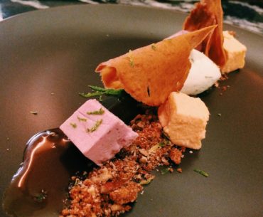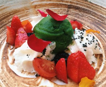 Basil sorbet, strawberries, sweet tomato, yuzu yogurt and black pepper meringue. The marquee name essentially…